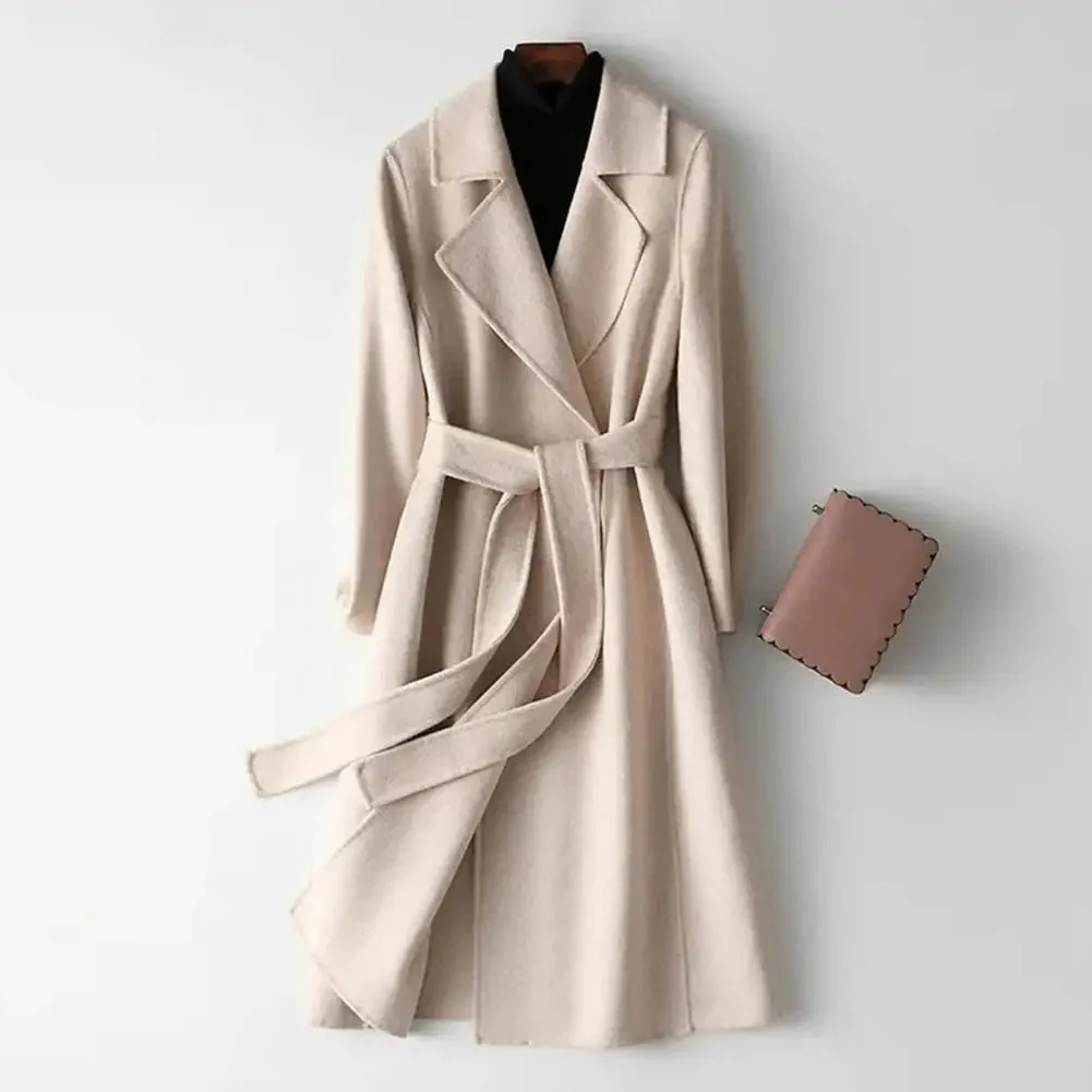 Introducing the Aimee Slim Fit Coat—a versatile, mid-length coat designed with a classic lapel and lace-up waist for a flattering, tailored look. Made from premium polyester, it provides warmth and style, perfect for cooler seasons.